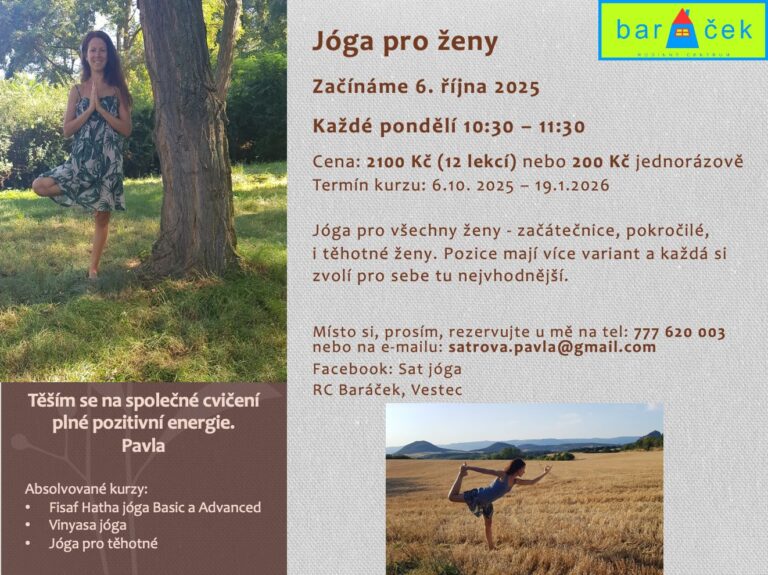 - Registrace: satrova.pavla@gmail.com, +420 777 620 003, Facebook: Sat jóga