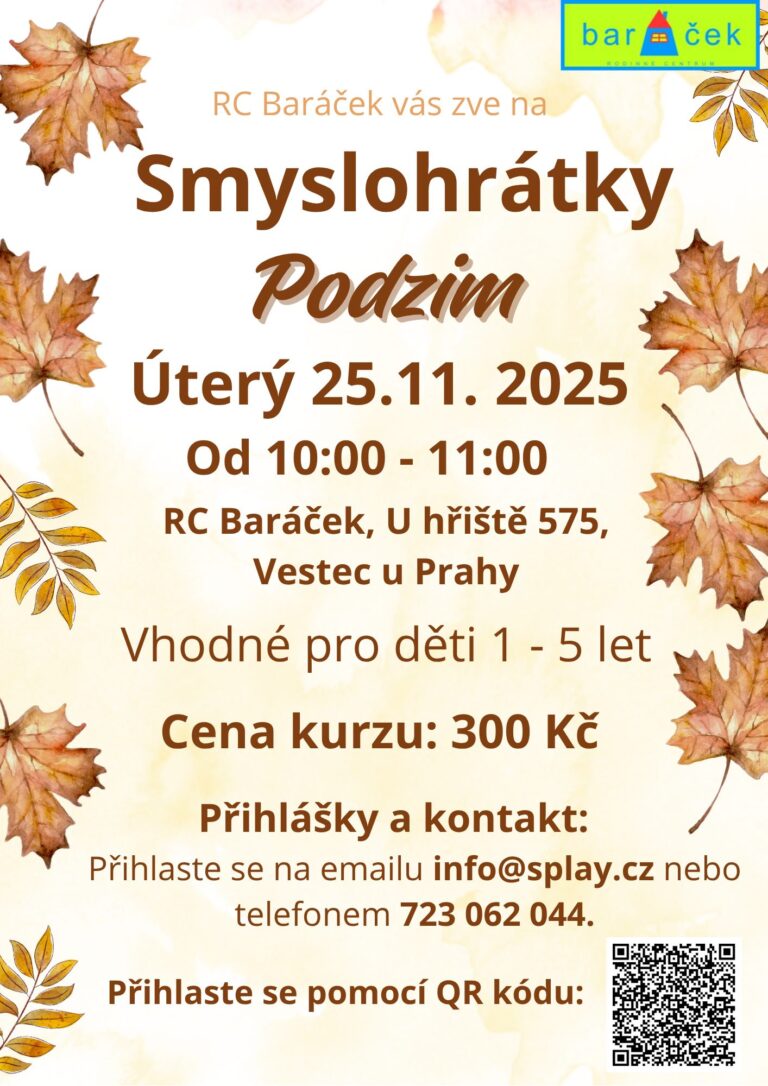 - Kdy: úterý 10:00 – 11:00 pouze 1x měsíčně podle předem vypsaného termínu – 25. 11. 2025 (téma Podzim), 16. 12. 2025 (téma Vánoce)